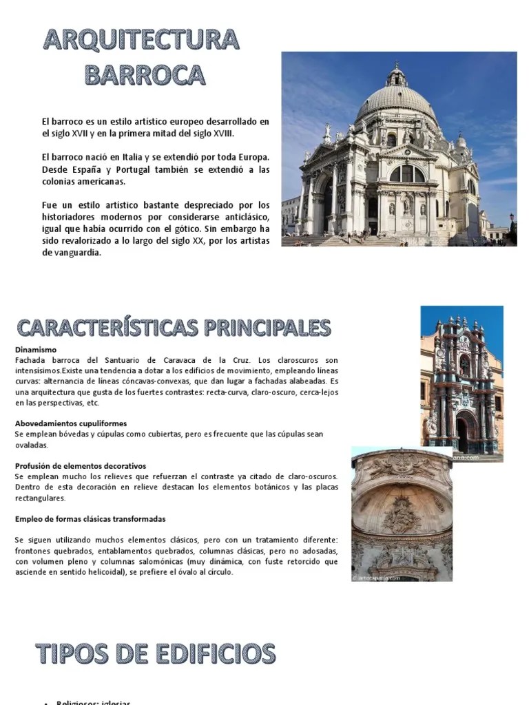 La arquitectura barroca en españa es muy distinta de la italiana, las fachadas curvas y el movimiento extremo tardan en imponerse... Se construyen edificios con materiales pobres y de aspecto sombrío. El barroco nació en italia y se extendió por toda europa... El barroco español es una línea de arquitectura barroca que se desarrolló en españa, sus provincias y antiguas colonias.